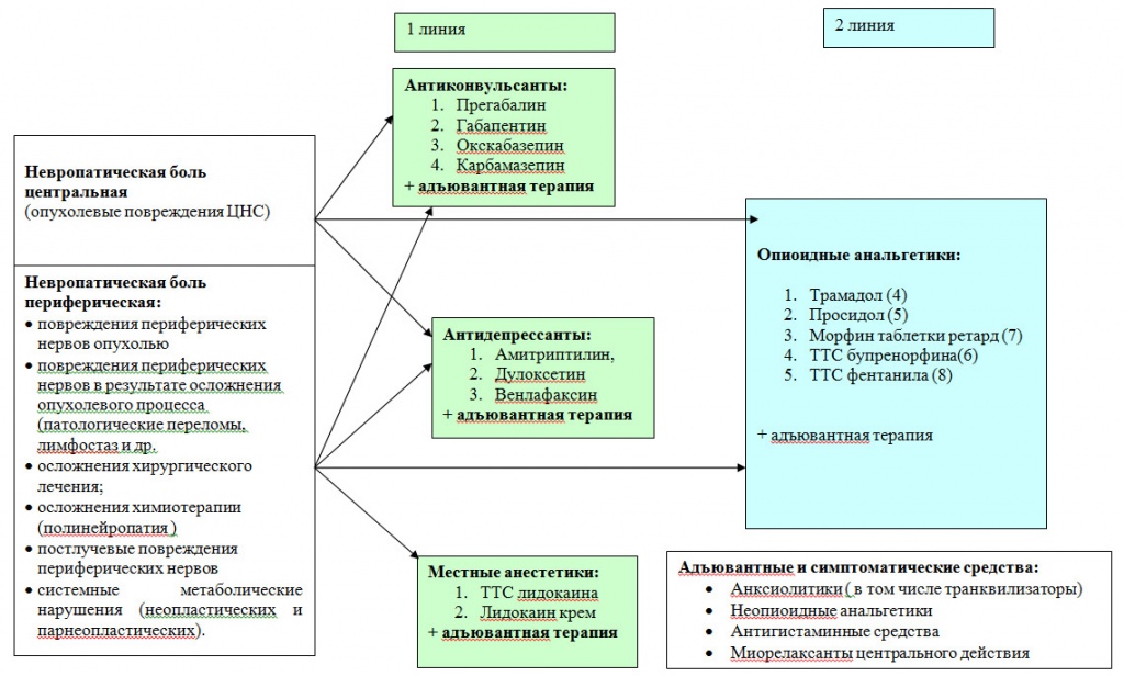 Рисунок 6. Фармакотерапия невропатического компонента хронического болевого синдрома в онкологии.